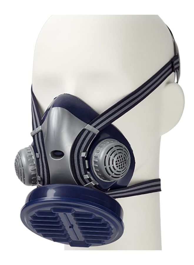 Модель: полумаска из мягкого гипоаллергенного эластомера со сменным фильтром Р2. Герметичная изоляция по всей линии обтюрации. Регулируемое оголовье.
